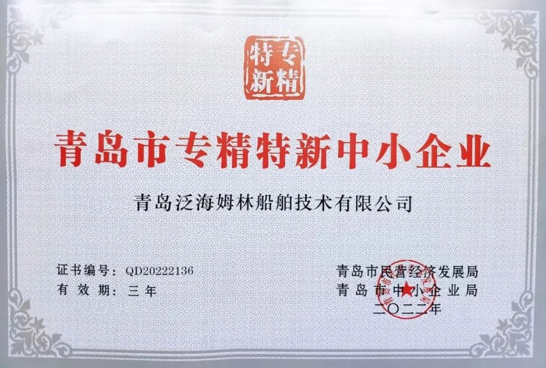 2023-02-092022年7月28日,经区市民营经济(中小企业)主管部门审核推荐、专家评审,青岛泛海姆林船舶技术有限公司被评为青岛市“专精特新”中小企业。