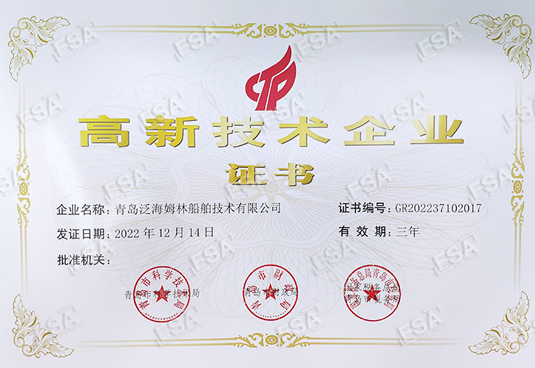 2025-04-18近日,青岛泛海姆林船舶技术有限公司顺利通过2022年度高新技术企业认定,荣获由青岛市科学技术局、青岛市财政局、国家税务总局青岛市税务局联合颁发的高新技术企业证书。